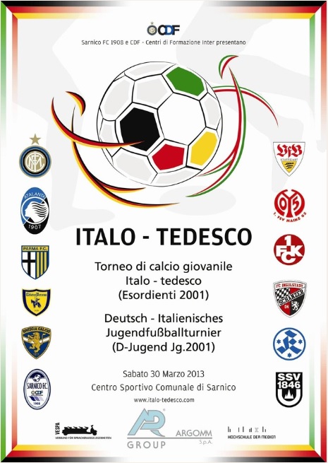 15.03 - La prima edizione del Torneo di calcio giovanile Italo-Tedesco si terrà a Sarnico (BG), il giorno di Sabato 30 Marzo 2013 con inizio alle ore 9.30, presso lo Stadio Comunale di Sarnico. Questa edizione del torneo è dedicata ai ragazzi nati nell'anno 2001 (under 12), con incontri a 9 vs 9.